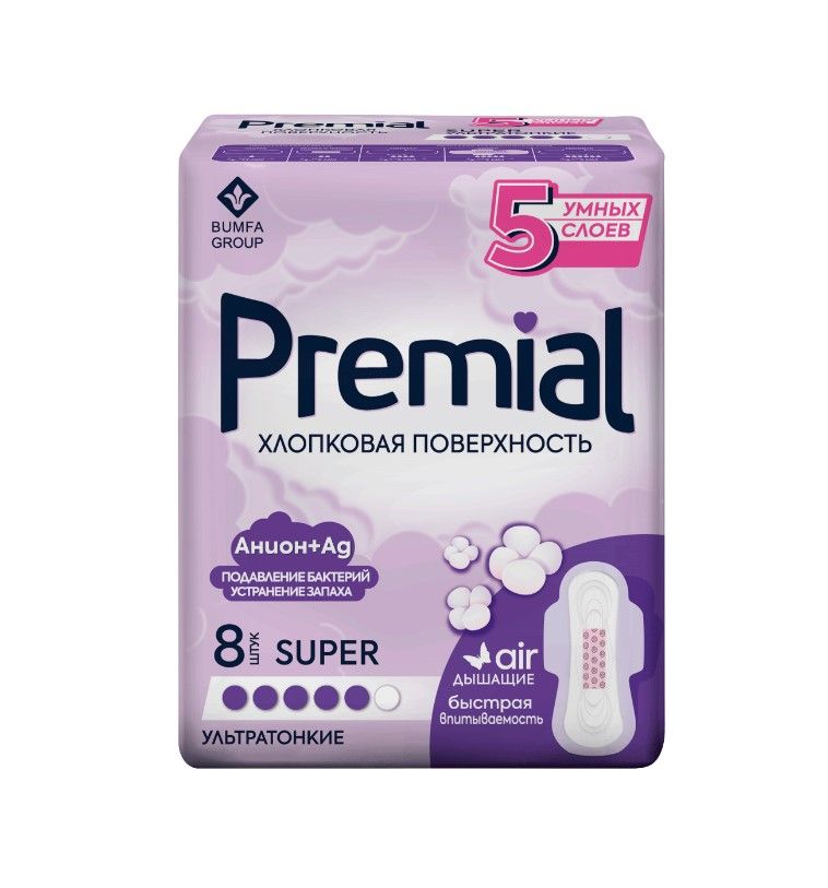 Premial прокладки женские гигиенические с крылышками super хлопковая поверхность 8 шт