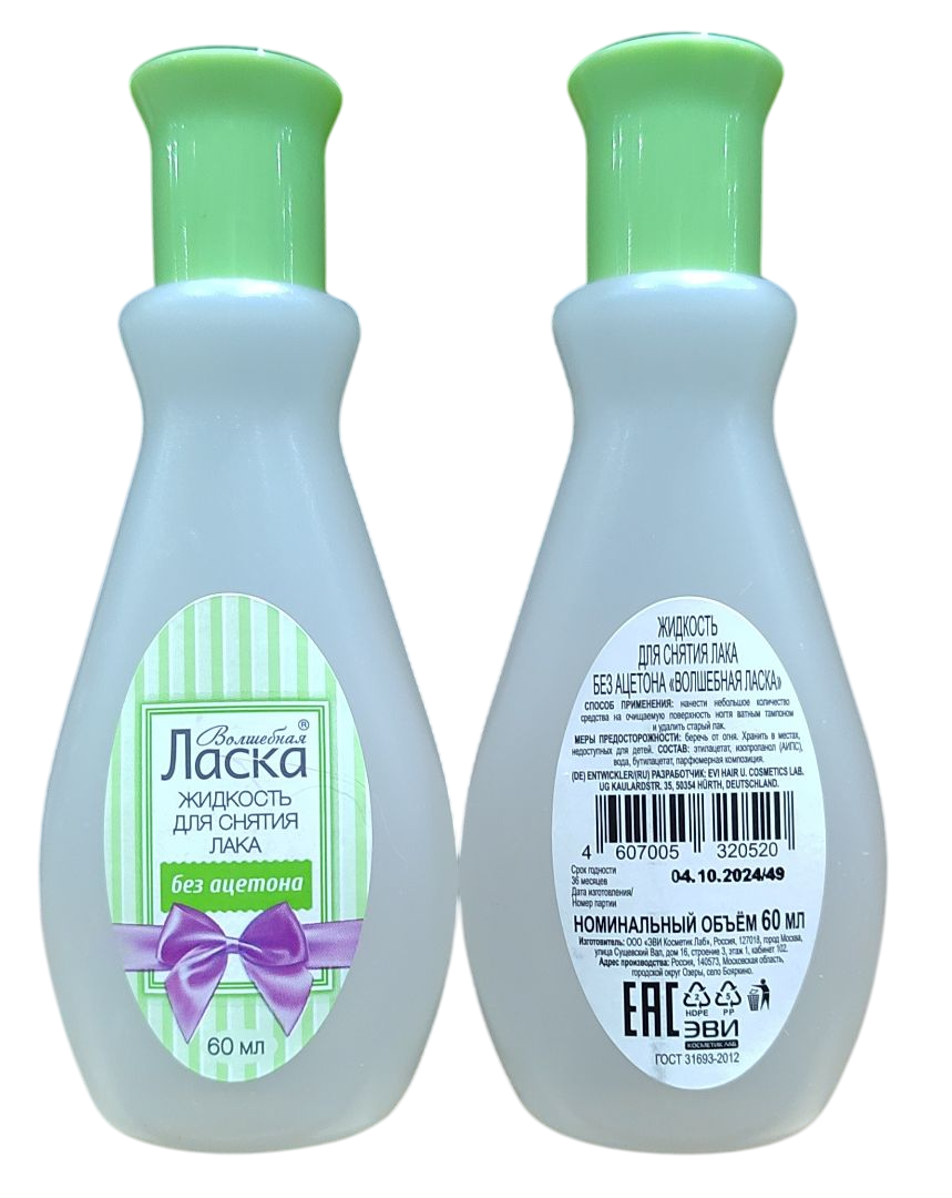 Средство для удаления лака с ногтей серии «Ласка» без ацетона мягко и эффективно удаляет любой лак, не повреждая структуру ногтей. Специальная безацетоновая формула жидкости предотвращает обезжиривание ногтевой пластины, отлично подходит для тонких и ломких ногтей.