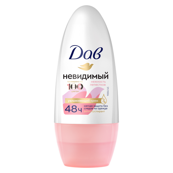 -Эффективно защищает от пота на 48 часов -Не содержит этилового спирта -Не оставляет белых следов на одежде* -На ¼ состоит из увлажняющего крема -Не тестируется на животных Dove антиперспирант-дезодорант роликовый Невидимый Нежность лепестков для женщин без этилового спирта с рецептурой, содержащей полупрозрачные микрочастицы, не оставляет белых следов на одежде и обеспечивает эффективную защиту от пота и запаха на 48 часов. Женский дезодорант-антиперспирант роликовый Dove Невидимый Нежность лепестков от пота на ¼ состоит из увлажняющего крема и содержит Helianthus Annuus Seed Oil (масло семян подсолнечника), обладающее увлажняющими и регенерирующими свойствами, помогающими от раздражения после бритья. Компания Dove уверена, что красота должна быть источником уверенности в себе, а не беспокойства. Поэтому Dove женский антиперспирант-дезодорант роликовый Невидимый Нежность лепестков не оставляет следов на одежде и помогает женщинам жить полной жизнью, не чувствуя стеснения из-за пота, запаха или раздражения на коже подмышек.