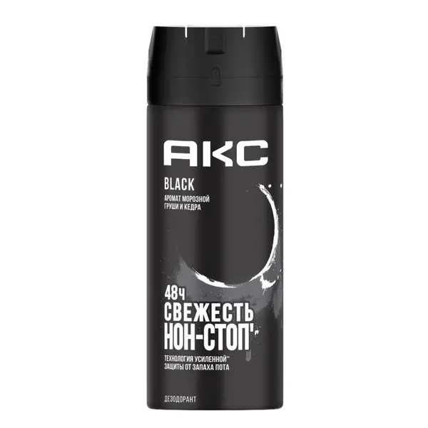 Дезодорант мужской спрей Акс BLACK создан специально для крутых парней, которым нужна полная уверенность в своем образе и стильный парфюм. Аэрозольный парфюмированный дезодорант мужской создан для тех, кто не боится стоять на своем, готов следовать за мечтой и привык действовать! Средство от запаха пота подмышек и тела имеет тонкий и благородный аромат, разработанный в сотрудничестве с одной из лучших мировых парфюмерных команд. Мужской дезодорант-спрей не оставляет белых следов и желтых пятен на одежде'. Дезодорант парфюмированный мужской Акс ежедневно обеспечивает желанную свежесть коже подмышек и одежде. Легендарная* формула спрея Акс включает в себя два основных элемента защиты. Это надежная защита от запаха пота на 48 часов** и топовый* аромат. Запах раскрывается постепенно, как настоящие духи. Шоу начинается с ярких фруктовых аккордов: груши, арбуза и малины. Сердце аромата заключает в себе нежные цветочные ноты: фрезию и водную лилию. А кедр и бергамот - это терпкий древесный шлейф запаха BLACK. Дезик мужской спрей станет изысканным дополнением к твоей коллекции средств личной гигиены. Дезодорант-спрей мужской содержит активный компонент против бактерий, вызывающих неприятный запах при потливости.