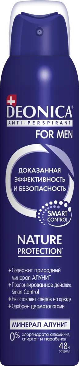 Уникальный мужской антиперспирант Deonica "Nature Protection for MEN" создан на основе суперчистого минерала АЛУНИТ фармацевтического качества. Он обеспечивает защиту от пота и запаха на 48 часов, не блокируя работу потовых желез.