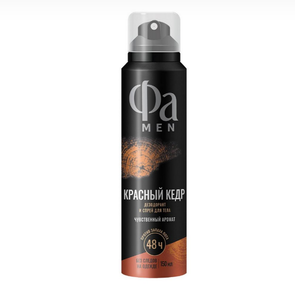 Фа MEN дезодорант мужской спрей для тела "Красный кедр" Обретите уверенность и свежесть с мужским дезодорантом-спреем "Красный кедр" от бренда Фа Men. Этот продукт создан для активных мужчин, которые ценят комфорт и надежность в повседневной жизни.