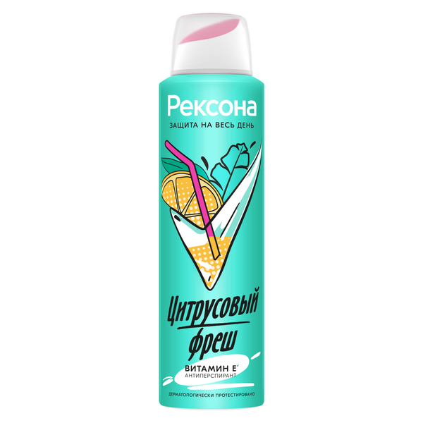 Ты можешь больше! Будь на территории уверенности Рексона. Попробуйте новый антиперспирант-аэрозол Цитрусовый фреш, разработанный специально для молодой кожи с 14 лет. Его мягкая и эффективная формула – это твоя гарантированная 48-часовая защита от пота и неприятных запахов. • Формула Rexona, обогащенная витамином Е*, увлажняет и восстанавливает кожу подмышек, обеспечивая вам комфорт. • Невидимая защита не оставляет следа. • Сочный аромат цитрусовых отлично бодрит. • Без этилового спирта и красителей. • Адаптация для использования с 14 лет. • Дерматологически протестирован. Нанеси спрей на чистую и сухую крышку подмышек и забудь про горшок и неприятный запах. Весь день ты будешь ощущать только бодрящий цитрусовый фреш. Живи активно каждый день: прогулка с собакой, в метро, встреча с друзьями – ты надежно защищён от пота и неприятных запахов. Рексона всегда рядом с тобой и не подведет!