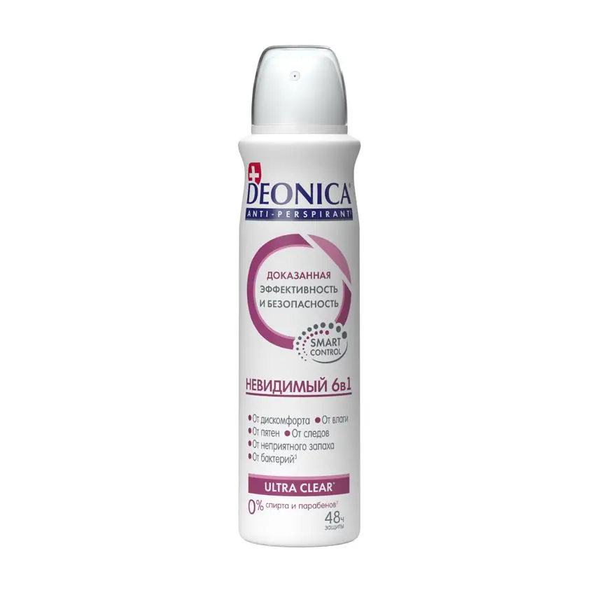 Эффективный антиперспирант DEONICA Невидимый 6в1 благодаря специальной формуле обеспечивает комплексную защиту от влаги, пятен и следов на одежде, бактерий, неприятного запаха.