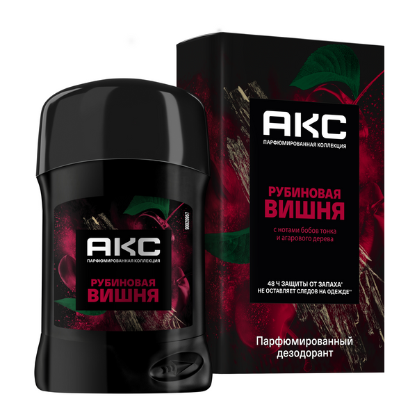 Дезодорант мужской твердый парфюмированный АКС Рубиновая Вишня – это средство личной гигиены для мужчин, которое содержит формулу с натуральными компонентами в составе парфюмерной композиции. Она эффективно блокирует появление неприятного запаха пота на протяжении 48 часов' и не вызывает раздражения кожи, что позволяет использовать средство от запаха пота подмышек для ежедневного применения. Дезодорант для мужчин стик не оставляет желтых пятен" на белой одежде и белых следов" на черной. Его премиальный аромат – это сочетание спелой вишни, восточных специй и дымной древесины. Рубиновая вишня – доминирующая нота парфюмерной композиции. '48ч тест оценки уровня неприятного запаха, 2010. "Обусловленных наличием солей алюминия.
