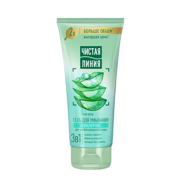 Чистая Линия гель для умывания 3в1 для комбинированной кожи с гиалуроном и соком алоэ 200 мл
