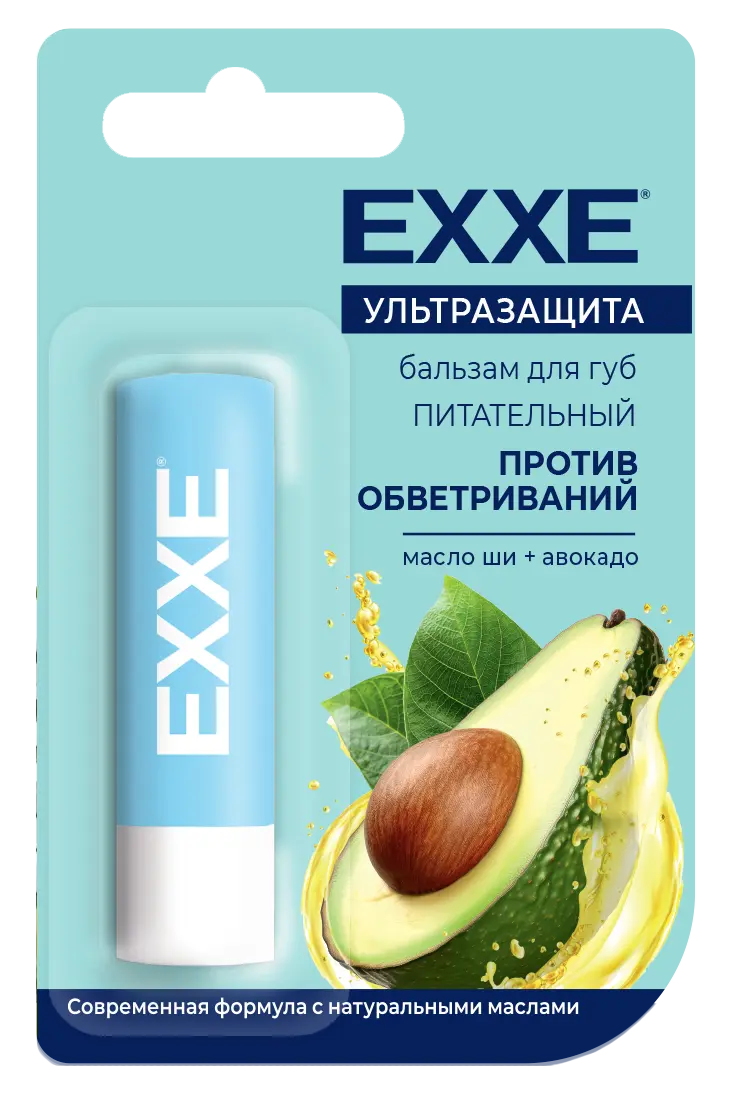 Специальная формула бальзама для губ EXXE® помогает заботиться о нежной коже губ и защищает от обветриваний благодаря высокому содержанию в составе драгоценных масел ши, авокадо и жожоба.
