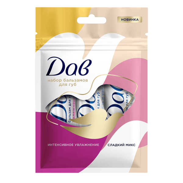 Бальзамы для губ увлажняющие набор 3 штуки Дав Сладкий микс созданы для бережного ухода за сухой кожей губ. Бережная уходовая формула и разнообразные сочные ароматы, которые имеют косметические бьюти продукты подходят для женщин, девушек и девочек-подростков с 14 лет, ценящих нежный уход и заботу о своих губах. В состав набора входят бальзамы для губ Дав: Увлажнение и питание с экстрактом манго и маслом миндаля Увлажнение и сияние с вишней и витамином Е оттеночный Увлажнение и мягкость с маслами кокоса и ши Увлажнение и питание кожи губ обеспечиваются формулой бальзамов, которая содержит натуральные масла миндаля и ши, эмоленты и активные компоненты, которые удерживают влагу в коже. Также они обеспечивают восстановление кожного покрова без чувства стянутости и сухости. Витамин Е, входящий в состав продуктов для ухода за губами, смягчает и увлажняет кожу. Защитная уходовая формула гигиенички обеспечивает дополнительную защиту от негативных факторов окружающей среды. Гигиеническая помада для губ увлажняющая женская набор из 3 штук имеет нежную текстуру, которая тает на губах, даря им комфорт и заботу. Насладитесь сладкими ароматами сочного манго, спелой вишни и экзотического кокоса, которые превратят каждое нанесение в неповторимый ритуал ухода и подарят удовольствие от использования!