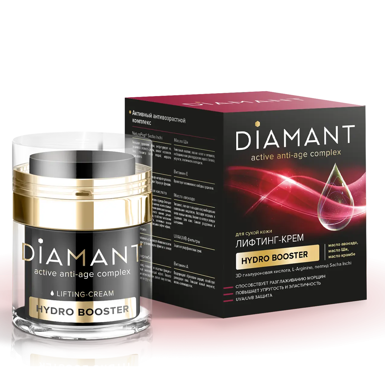 С годами клетки эпидермиса начинают хуже удерживать влагу, кожа теряет эластичность и становится более сухой. Поэтому ей необходимо дополнительное питание и увлажнение. Лифтинг-крем DIAMANT создан специально для ухода за сухой зрелой кожей и обладает интенсивным действием в борьбе с возрастными изменениями. Комплекс активных ингредиентов в составе крема направлен на глубокое увлажнение и омоложение. При регулярном использовании кожа становится более упругой и эластичной, контуры лица выразительнее, а морщины - менее заметными. Уникальная бархатистая текстура крема быстро впитывается и не оставляет жирной или липкой пленки на лице. Активный антивозрастной комплекс: