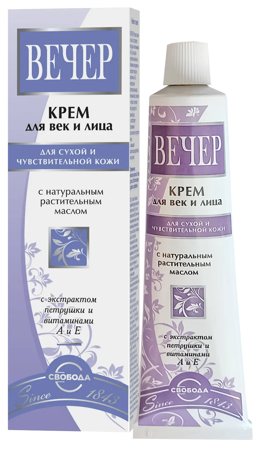 Крем для век и лица с экстрактом петрушки и витаминами А и Е для сухой и чувствительной кожи, содержит 100% натуральные масла, сокращает морщины, устраняет темные круги под глазами.