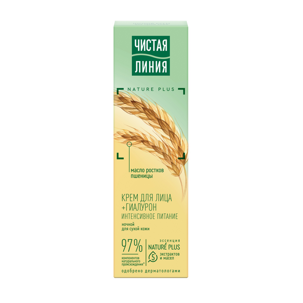 Встречайте обновленный крем от Чистой Линии с усиленной формулой1 и новым дизайном! Для восстановления ночью необходим специальный уход, отвечающий потребностям кожи конкретного типа. Питательный ночной крем разработан экспертами бренда Чистая Линия с учетом потребностей сухой кожи. Продукт содержит 97% компонентов натурального происхождения*. Активные ингредиенты крема: эссенция из пяти экстрактов и масел NATURE PLUS (экстракт вербены, экстракт пиона, масла миндаля, льна, оливы), масло облепихи и гиалурон. Натуральные компоненты питают, восстанавливают липидный барьер, предотвращая появление мелких морщинок. Кожа лица получает глубокое1 увлажнение, которое длится до 24 часов2! Зачастую именно сухость приводит к образованию морщин и преждевременному старению. - Экстракт вербены восстанавливает баланс увлажненности и тонизирует; - Экстракт пиона и льняное масло успокаивают и смягчают; - Масло миндаля содержит жирные кислоты, витамины Е и F, питает и выравнивает поверхность кожи; - Ферментированное оливковое масло – мощный природный антиоксидант, питает и защищает от преждевременного старения; - Гиалурон притягивает молекулы воды, а также создает на поверхности кожи тонкую невидимую пленку, благодаря чему насыщает влагой; - Масло ростков пшеницы, природный источник витамина Е, питает и смягчает.