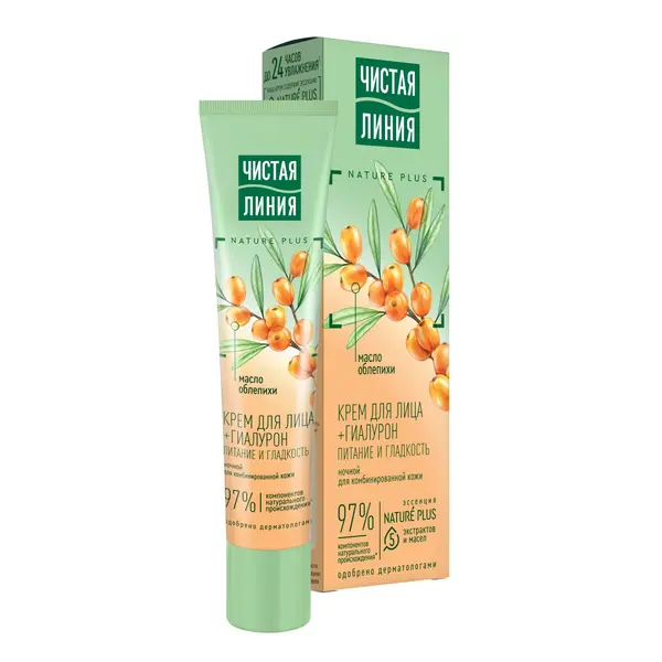 Чистая Линия ночной крем для лица питание и гладкость с гиалуроном и маслом облепихи 40 мл