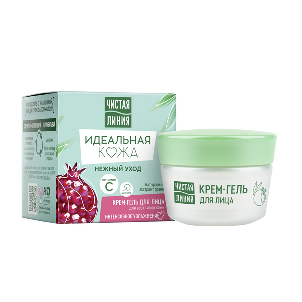 Наша кожа нуждается в тщательном уходе в любом возрасте. Молодая кожа часто требует эффективного, но бережного очищения от черных точек и прыщей, увлажнения без эффекта пленки и избавления от жирного блеска. Идеальная кожа – мечта каждой девушки! Поэтому специалисты бренда Чистая Линия создали серию средств Идеальная кожа для разных типов кожи, чтобы помочь девушкам достичь совершенства. Уникальная мультиактивная формула крем-геля содержит экстракт граната, витамин С и центеллу: - Экстракт граната витаминизирует кожу, улучшает микроциркуляцию, стимулирует синтез коллагена, а также защищает от воздействия окружающей среды; - Витамин С придает коже сияние, наполняет ее энергией; - Центелла увлажняет, успокаивает кожу, поддерживая ее естественную упругость и тонус. Крем мгновенно впитывается и обладает UV защитой, являясь отличной основой под макияж. Одобрено дерматологами. В результате Ваша кожа матовая, бархатистая, наполненная энергией уже через 3 дня.