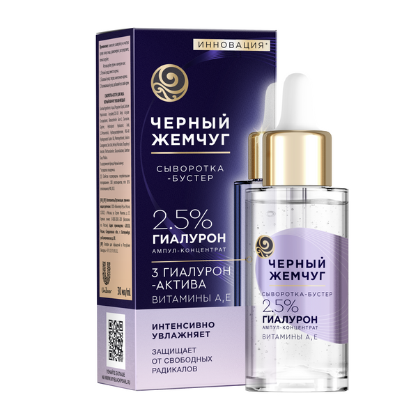 Черный Жемчуг сыворотка бустер для лица увлажняющая с гиалуроновой кислотой витаминами а и е 30 мл