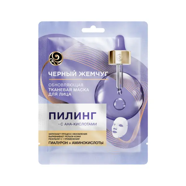 Черный жемчуг тканевая маска для лица обновляющая мягкий пилинг с комлексом кислот гиалуроном 1 шт