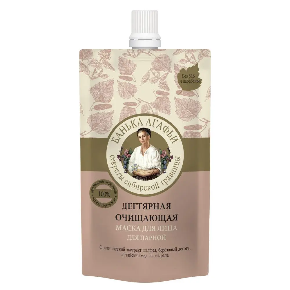 Банька Агафьи маска для лица дегтярная очищающая для парной 100 мл
