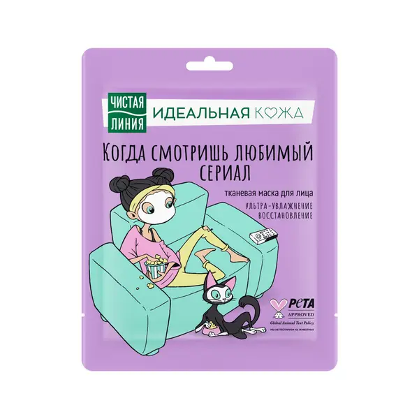Смотришь сериалы? Залипаешь в телефон перед сном? Не можешь разомкнуть глаз утром? Совмести свое любимое занятие с УЛЬТРА-увлажнением* и восстановлением кожи! В любой понятной и непонятной ситуации используй тканевую маску для лица. Тканевая маска Идеальная кожа придает коже мягкость и отдохнувший вид, делает цвет лица сияющим, а также освежает область под глазами, благодаря мяте в составе, которая буквально заставляет твою кожу проснуться. А вулканическая вода в составе дарит коже оптимальное увлажнение. Используй утром, когда лечь пораньше спать уже не получилось, а бодрость и энергия не помешает, или вечером, когда смотришь любимые сериалы. Идеальная кожа - это специальная мультиактивная серия средств, созданная специалистами бренда Чистая Линия для молодой кожи. Серия Идеальная кожа включает в себя средства для всех этапов ухода за кожей: очищение, тонизирование, увлажняющий и питающий уход с кремом. В состав очищающих средств и кремов Идеальная кожа входят природные экстракты таких растений, как: мята, ромашка, чайное дерево, эвкалипт, зеленый чай, морошка, гранат, а также цинк, глина, и многое другое