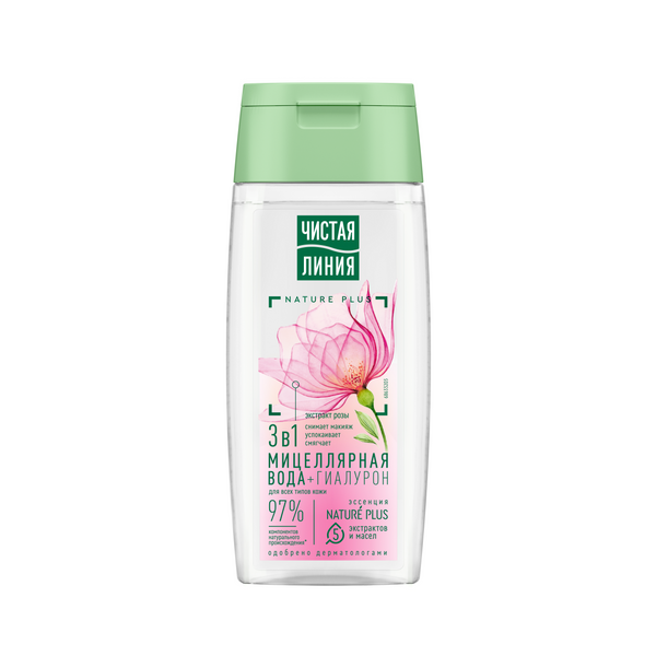 Чистая Линия мицеллярная вода 3 в 1 для всех типов кожи с гиалуроном и экстрактом розы 100 мл