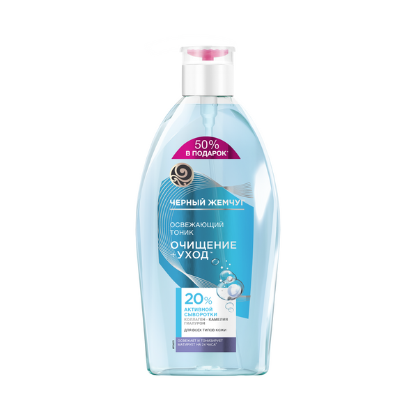Чистая и ухоженная кожа начинается с бережного и качественного очищения. Попробуйте тоник для всех типов кожи от бренда Черный Жемчуг, соответствующий новому* стандарту очищения: Очищение + Уход. Тоник освежает и тонизирует кожу, а также придает матовость на 24 часа2. Уход за кожей становится в 2 раза эффективнее1. Уникальная* технология: формула с 20% активной сыворотки увлажняет, питает и повышает упругость кожи уже на этапе ее очищения. В составе сыворотки коллаген, гиалурон, масло камелии. • Коллаген подтягивает кожу и восстанавливает тонус. • Гиалуроновая кислота активно увлажняет и, как следствие, улучшает внешний вид кожи, возвращает ей тонус и естественное сияние. • Камелия японская (масло цубаки) обладает антиоксидантными и успокаивающими свойствами. Эффективность подтверждена результатами тестирования2: 93% – кожа чистая, дышит свежестью; 87% – матовость без сухости на 24 часа. Одобрено дерматологами. Для максимального эффекта используйте все средства серии. Утром – гель для бережного и качественного очищения, затем ухаживающий тоник, который удалит остатки загрязнений и подготовит кожу к нанесению крема. Вечером откройте для себя мицеллярную воду, которая удалит даже стойкий макияж, при этом не оставляя чувства стянутости и сухости