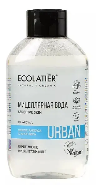 Ecolatier мицеллярная вода для снятия макияжа для чувствительной кожи цветок кактуса алоэ вера 600 мл