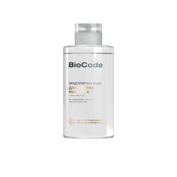 Система ухода за кожей от бренда BioCode — это эффективные косметические средства, разработанные совместно с Институтом пластической хирургии и косметологии. Комплекс домашнего ухода за состоянием кожи учитывает ресурсы красоты, заложенные в коде вашей кожи. Мицеллярная вода для снятия макияжа с глаз и лица BioCode создана специально для бережного удаления макияжа и очищения кожи без нарушения естественного баланса у женщин и девушек. Уходовый продукт обеспечивает мягкое и нежное очищение, быстрое снятие стойкого макияжа и ровного тона, а также подготавливает кожу к нанесенному средству ухода. Мицелярка для снятия макияжа женская гипоаллергенная содержит в составе формулы, обогащенную Pro-Microbio Complexom, экстрактом центеллы азиатской и гиалуроновой кислоты. Комплекс Pro-Микробиом включает в состав два пребиотика, которые эффективно восстанавливают микрофлору и укрепляют барьер кожи. Экстракт нежной нежной успокаивающей терапии и низкой чувствительности кожи лица к изменяющимся условиям. Гиалуроновая кислота глубоко увлажняет эпидермис и создает ощущение сухости, стянутости и шелушения. Увлажняющая жидкость для снятия макияжа с глаз, ресниц, бровей и губ подходит для любого типа кожи. В том числе для сухой, жирной, проблемной, комбинированной и чувствительной. Смывка для макияжа с гиалуроновой кислотой мягко воздействует на кожу благодаря специальным мицеллам, которые притягивают загрязнения как магнит. Мицеллярная вода с помпой одобрения практикующими дерматологами. Гипоаллергенно.