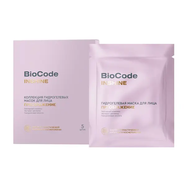 Система ухода за кожей от бренда BioCode - это эффективные косметические средства, разработанные совместно с Институтом пластической хирургии и косметологии. Комплекс домашнего ухода за кожей восстанавливает естественный ресурс красоты, заложенный в коде вашей кожи. Гидрогелевая маска для лица BioCode Преображение преображает кожу лица у женщин и девушек, дарит ей гладкость, упругость и здоровое сияние, устраняя следы усталости. Несмываемая маска для лица антивозрастная от отеков и от морщин содержит в составе формулу, обогащенную комплексом пептидов и экстрактом центеллы азиатской и гиалуроновой кислотой. Комплекс пептидов укрепляет кожу лица и повышает ее тонус. Экстракт центеллы азиатской выравнивает тон и придает коже здоровое естественное сияние. Гиалуроновая кислота обеспечивает глубокое увлажнение эпидермиса, наполняя кожу влагой и возвращая ощущение свежести. Защищает эпидермис от сухости, стянутости и шелушения. Одобрено дерматологами. Омолаживающая маска для лица с лифтинг эффектом подтяжки овала лица подходит для любого типа кожи. В том числе для сухой, жирной, проблемной, комбинированной и чувствительной.