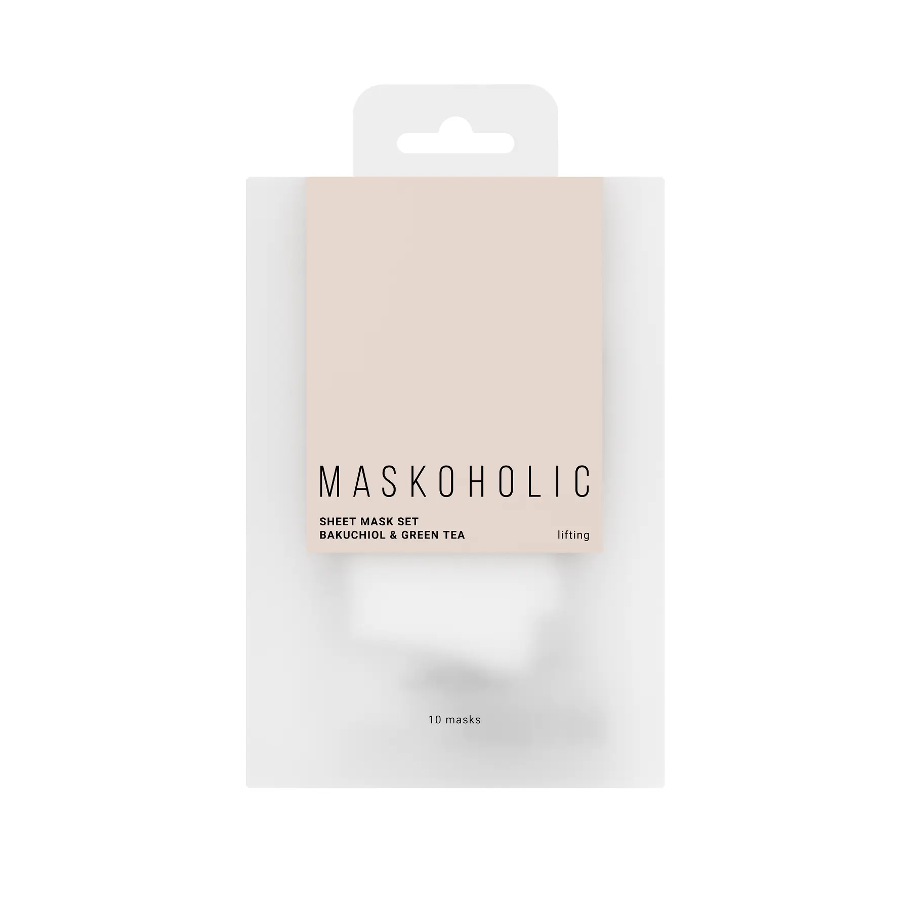 Maskoholic омолаживающая тканевая маска для лица с бакучиолом и экстрактом зеленого чая набор 10 шт
