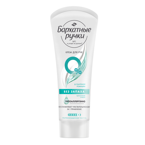Бренд Бархатные Ручки представляет крем для рук БЕЗ ЗАПАХА. Сухая и чувствительная кожа рук требует специального и бережного ухода. Интенсивный крем с формулой Silk Oil Elixir, усиленной пантенолом и ромашкой, разработан специально для быстрого восстановления сухой и чувствительной кожи рук. Отдушки могут являться катализатором аллергии. Многие потребители не могут использовать крема с ярко-выраженным запахом из-за аллергической реакции. Крем Бархатные ручки не содержит отдушки и является гипоаллергенным, подходит для использования в сезон аллергии. Продукт рекомендован дерматологами и аллергологами.