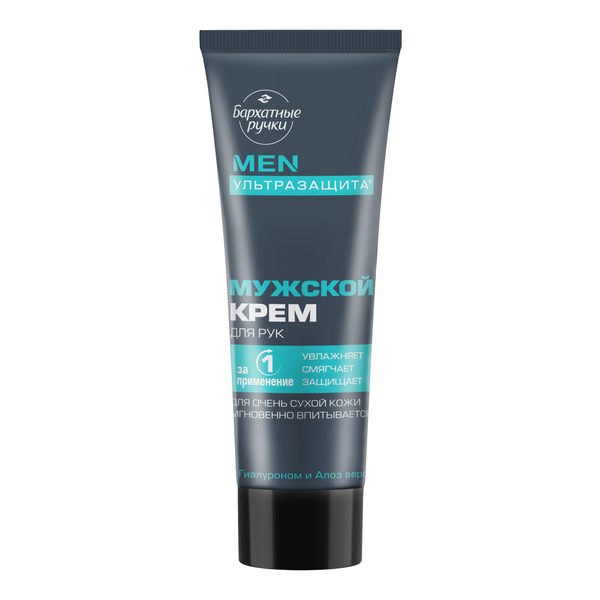 Специально для ухода за мужскими руками эксперты бренда Бархатные ручки разработали долгожданную новинку – крем Ультразащита°. Руки мужчин постоянно в деле: ремонтируют, носят тяжести, зачастую контактируют без перчаток с бытовой химией. Результат: грубая сухая кожа. Мужской крем для рук Бархатные ручки смягчает всего за одно применение, восстанавливает даже очень сухую кожу рук и устраняет шелушение! Активные ингредиенты в составе комплексно воздействую на кожу: • Гиалурон интенсивно увлажняет и создает на поверхности невидимый слой, который помогает контролировать испарение влаги. • Алоэ вера смягчает и успокаивает. • Масла ши и миндаля разглаживают и питают. Мужской крем Ультразащита° мгновенно впитывается, не оставляя жирной пленки. Им удобно пользоваться как дома, так и вне его. Объем 80 мл можно положить в машину или оставить на работе.