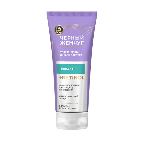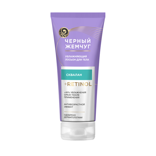 Лосьон для тела Черный Жемчуг Увлажняющий — новинка для интенсивного увлажнения кожи тела с антивозрастным действием. Лосьон для тела женский замедляет проявление признаков старения и обеспечивает заметный результат: +46% увлажнения сразу после применения’! Особая’’ формула лосьона для тела увлажняющего для сухой кожи обогащена скваланом из семян камелии и ретинолом. Компоненты отлично работают в комплексе, оказывая ухаживающее и омолаживающее действие: - Сквалан из семян камелии, насыщенный витаминами, укрепляет липидный барьер, препятствуя потере влаги. - Ретинол участвует в восстановлении коллагенового матрикса и ускоряет процессы обновления клеток кожи. Подарите вашей коже комфорт и управляйте возрастными изменениями вместе с увлажняющим лосьоном для тела Черный Жемчуг: - Лосьон для тела после душа напитывает кожу влагой, интенсивно увлажняет и смягчает. - Лосьон увлажняющий для тела мгновенно устраняет сухость и стянутость. - Средство замедляет появление признаков старения. - Аквасберегающая формула лосьона с полисахаридами и пребиотиками дарит коже гладкость, комфорт и свежий аромат. - Увлажненность кожи сохраняется до 7 дней после прекращения использования! Увлажняющий лосьон для тела оптимально подойдет для сухой кожи. Также средство можно использовать после пребывания на солнце и после душа, чтобы восстановить баланс влаги и напитать кожу!
