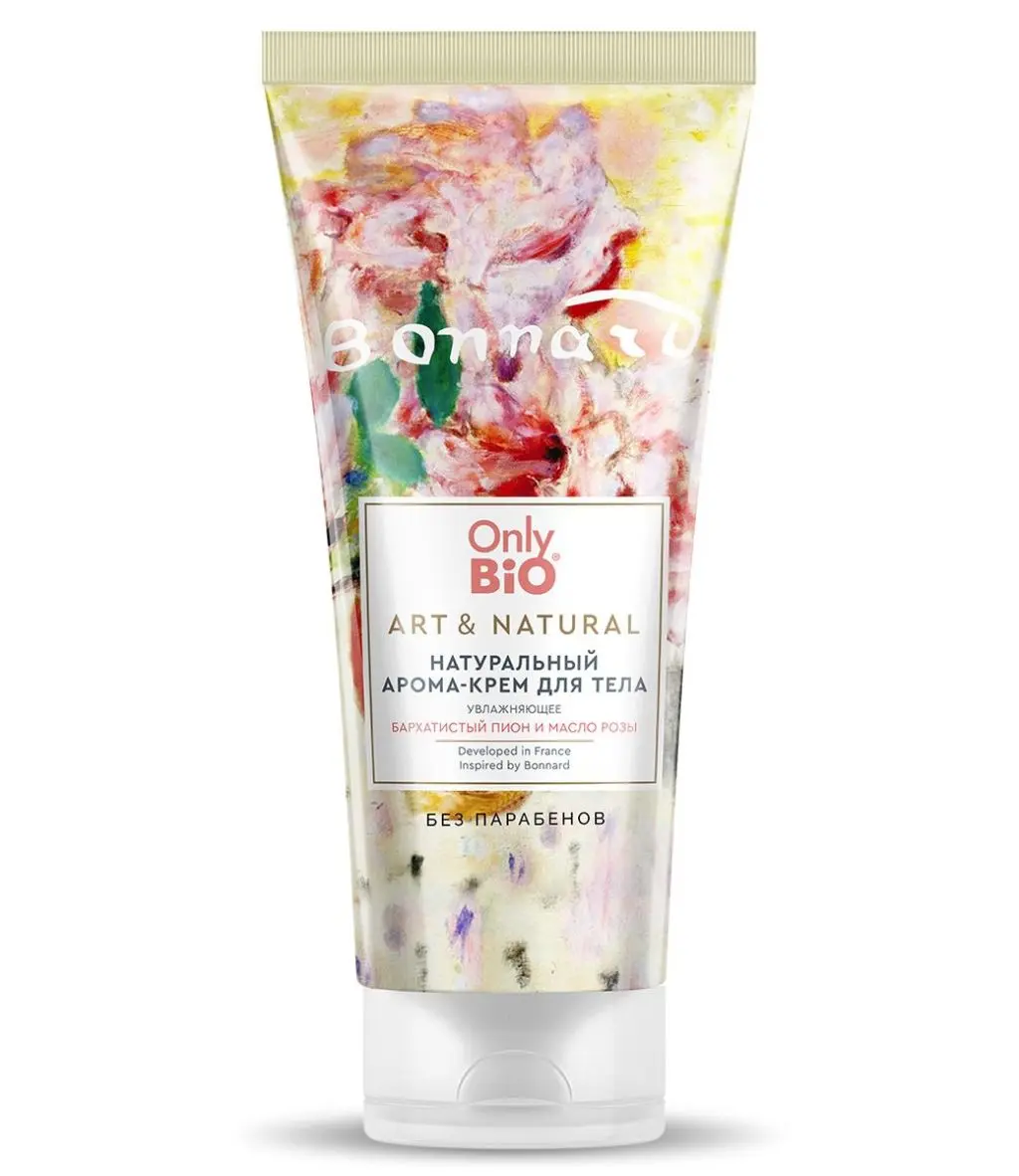 Only Bio Art & Natural натуральный арома крем для тела увлажняющий бархатистый пион и масло розы 200 мл