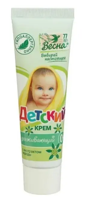 Крем детский Весна с экстрактом череды деликатно увлажняет и успокаивает нежную кожу малыша.