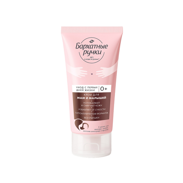 Крем-лосьон для рук, лица и тела Бархатные Ручки имеет гипоаллергенную формулу без отдушки и содержит комплекс из пяти натуральных масел, D-пантенол и экстракт хлопка. Средство эффективно успокаивает эпидермис, обеспечивает мягкое увлажнение раздраженной кожи и избавляет от сухости, стянутости и шелушения. Подходит для самой нежной и чувствительной кожи малышей с 0 лет. Крем для рук, лица и тела идеален для повседневного ухода за кожей маленьких детей, может использоваться как крем под подгузник или как успокаивающий крем для сосков. Одобрен педиатрами, рекомендован врачами дерматологами.
