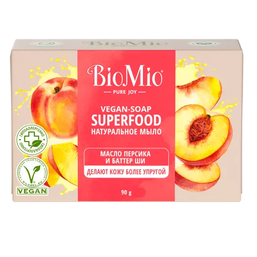 BioMio Натуральное мыло Superfood с маслом Персика и баттером Ши 90 г