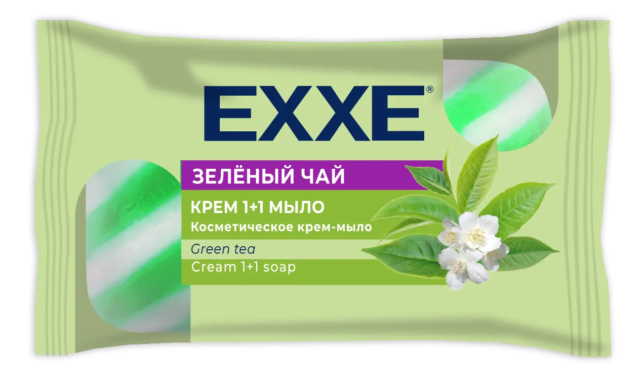 Exxe крем мыло 1+1 зеленый чай зеленое полосатое 90 г