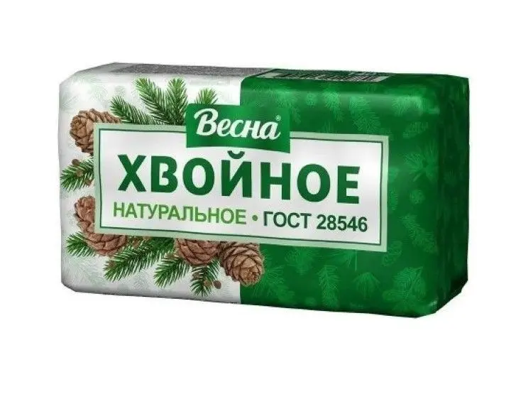 Мыло туалетное Хвойное от ПКК Весна для очищения рук и тела. Твердое туалетное мыло хвойное в форме бруска, светло-голубого цвета, обладает свежим хвойным ароматом. Туалетное мыло хвойное производится из натурального сырья и подходит для ежедневного применения. Глицерин в составе твердого мыла для рук и тела смягчает, увлажняет эпидермис, образует тонкую защитную пленку, предотвращающую потерь влаги. Натуральное мыло бережно очищает, препятствует появлению шелушения, стянутости, регулирует водный баланс в слоях эпидермиса. Хвойное туалетное мыло с глицерином обладает хорошим пенообразованием, обильная, душистая пена легко смывается, не оставляет липкости. Туалетное мыло идеально для ежедневного применения. Твердое мыло подходит для застирывания, замачивания, стирки белья.