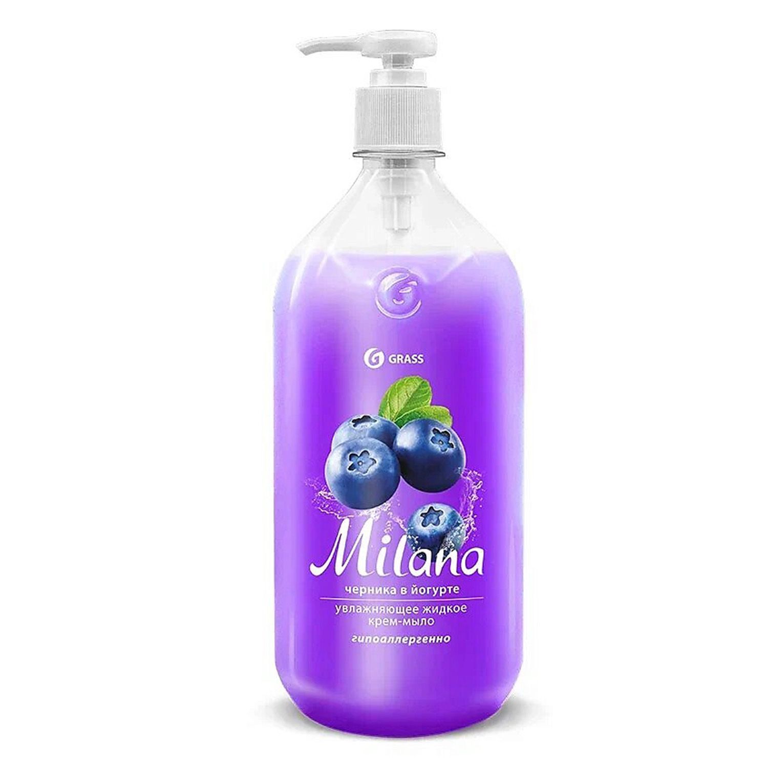 Grass Milana жидкое крем мыло для рук черника в йогурте с дозатором 1000 мл