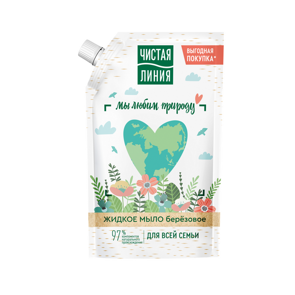 Совершайте выгодные* и экологичные покупки вместе с продуктами от бренда Чистая Линия. Попробуйте жидкое мыло для всей семьи, разработанное экспертами бренда Чистая Линия. Оно содержит 97% компонентов натурального происхождения. В составе мыла березовый сок, насыщенный витаминами группы В и С, минеральными солями и микроэлементами. Он обладает увлажняющим эффектом, дарит гладкость и бархатистость2. 100% натуральная основа жидкого мыла1 бережно и качественно очищает, защищает кожу от пересушивания во время мытья2. Имеет pH родственный коже, не содержит красителей. Подходит для использования всей семьей, в том числе детьми от 4-х лет. Свойства продукта подтверждены в ходе потребительского тестирования. Так, 82% респондентов отметили, что жидкое мыло для всей семьи Чистая Линия увлажняет кожу; 90% – смягчает, дарит гладкость и бархатистость коже рук; 88% – не сушит кожу; 82% – обладает ультраувлажняющим эффектом.Формат дой-пак упаковки в объеме 500 мл, позволяет снизить использование пластика в 7 раз.3 Мы берем лучшее от природы, чтобы позаботиться о вашей красоте и верим, что о природе нужно заботиться так же, как о себе.