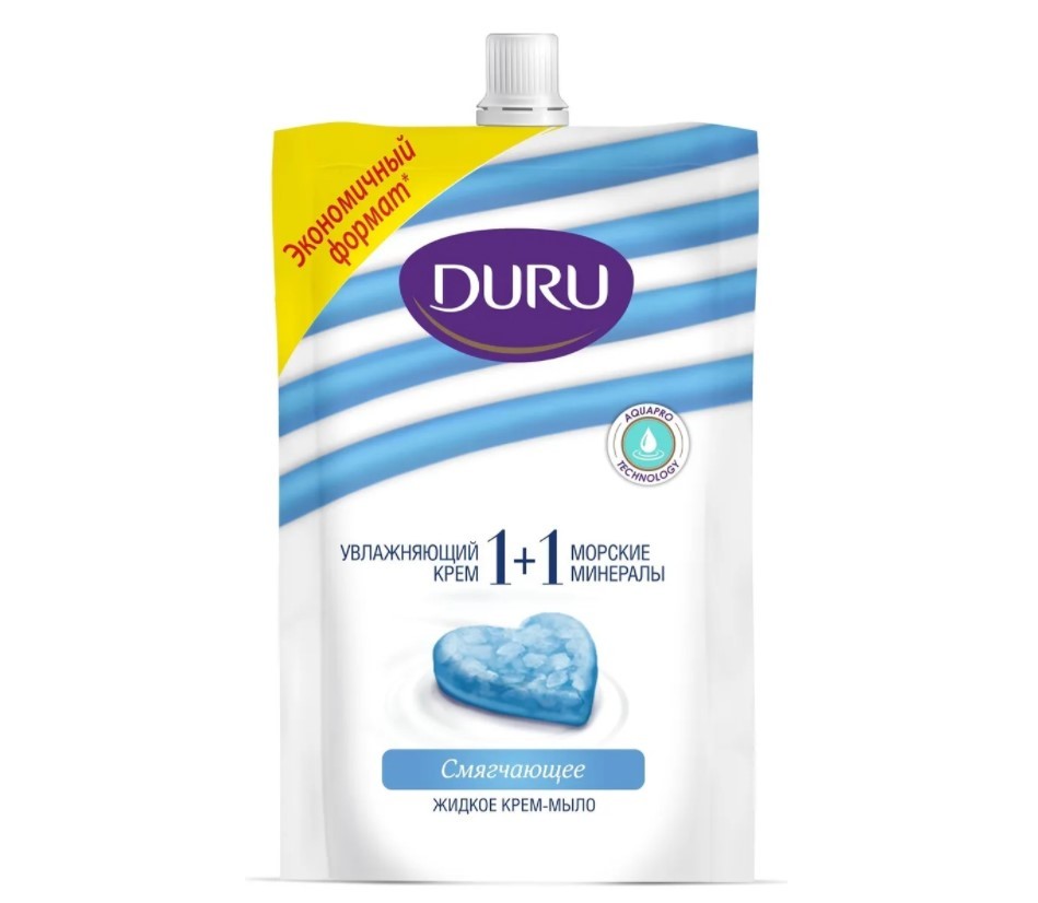 Жидкое крем-мыло DURU 1+1 Морские минералы имеет очень мягкую увлажняющую текстуру и приятный морской аромат для Ваших рук.