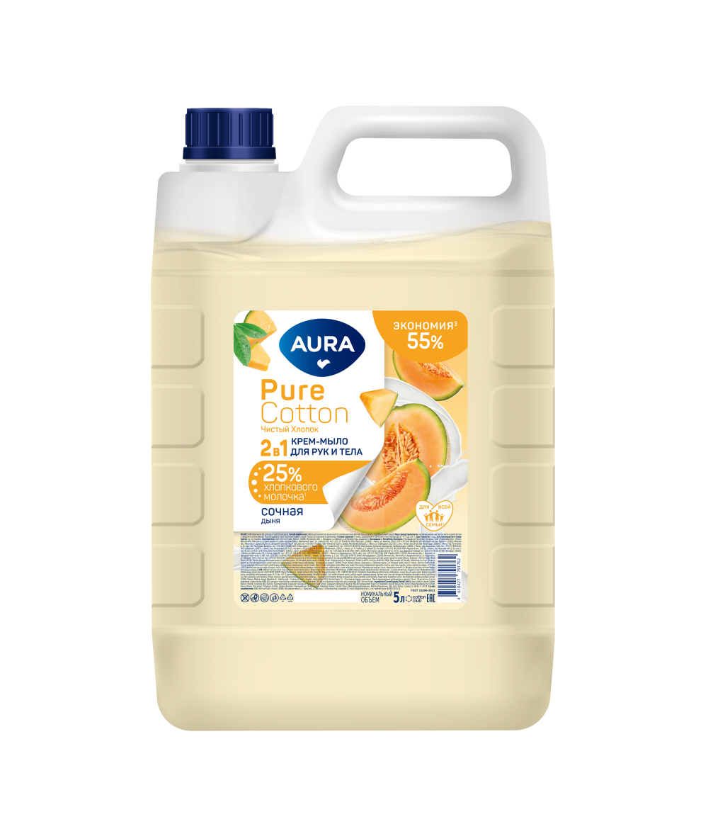 Aura крем мыло 2 в1 для рук и тела сочная дыня канистра 5000 мл