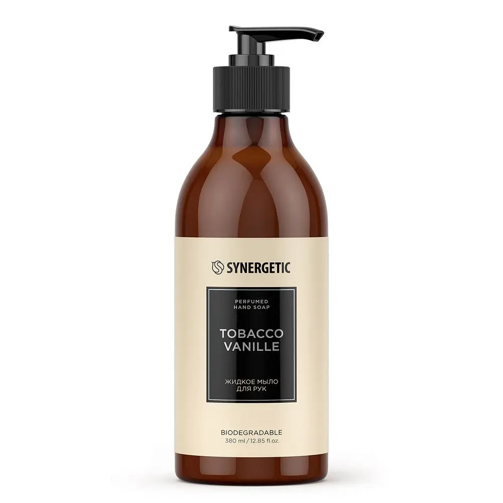 Жидкое мыло для рук SYNERGETIC tobacco-vanille/табак-ваниль бережно очищает кожу и оставляет на ней пряный амбровый аромат. Уникальный комплекс натуральных компонентов обеспечивает длительный смягчающий эффект и способствует восстановлению липидного слоя кожи. Масла макадамии и льна смягчают и питают, а экстракты ванили и розмарина успокаивают, придавая ей здоровый и ухоженный вид. Мультифункциональный компонент натурального происхождения софоролипид мягко очищает и сохраняет естественный микробиом кожи. Парфюмерная композиция наполнена восхитительными сочетаниями сладких восточных, древесно-пряных и пьянящих табачных нот. Загадочный характер аромата открывается дымными и терпкими оттенками специй и табачных листьев, которые плавно перетекают в сладость ванили, какао и обжаренных бобов тонка. Завершается симфония аккордами многогранных древесных акцентов с нотами сухофруктов. Аромат наполнен тёплым вечерним настроением, он восхищает своей многогранной красотой и смелым темпераментом.