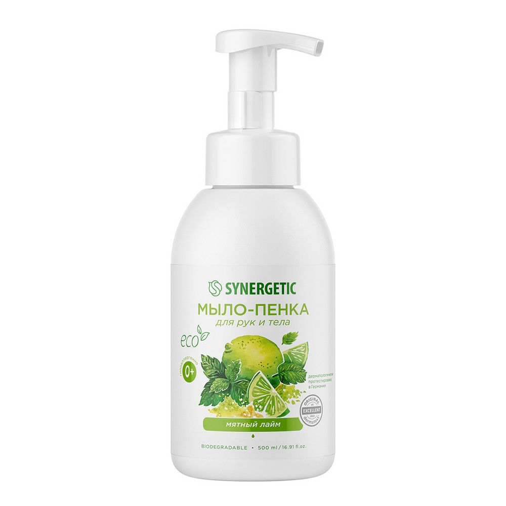 Synergetic гипоаллергенное натуральное детское мыло пенка для рук и тела мятный лайм 500 мл