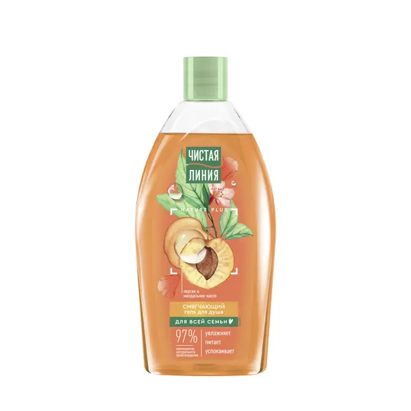 Чистая Линия гель для душа смягчающий для всей семьи на натуральной основе с персиком и маслом миндаля 750 мл