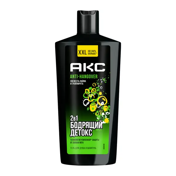 Акс гель для душа и шампунь для волос 2 в1 мужской парфюмированный anti hangover перезагрузка 610 мл