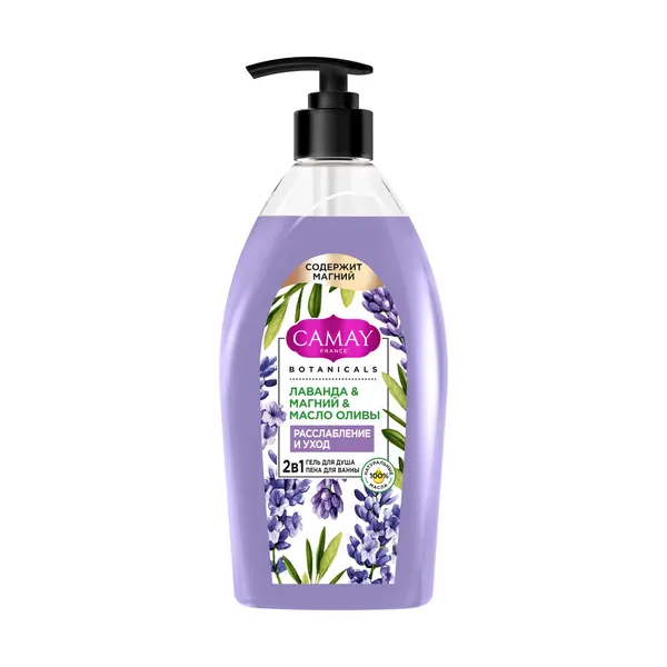Camay гель для душа и пена для ванны лаванда с магнием и маслом оливы 750 мл