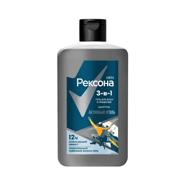 Рексона men гель для душа умывания и шампунь 3 в 1 активный уголь 490 мл