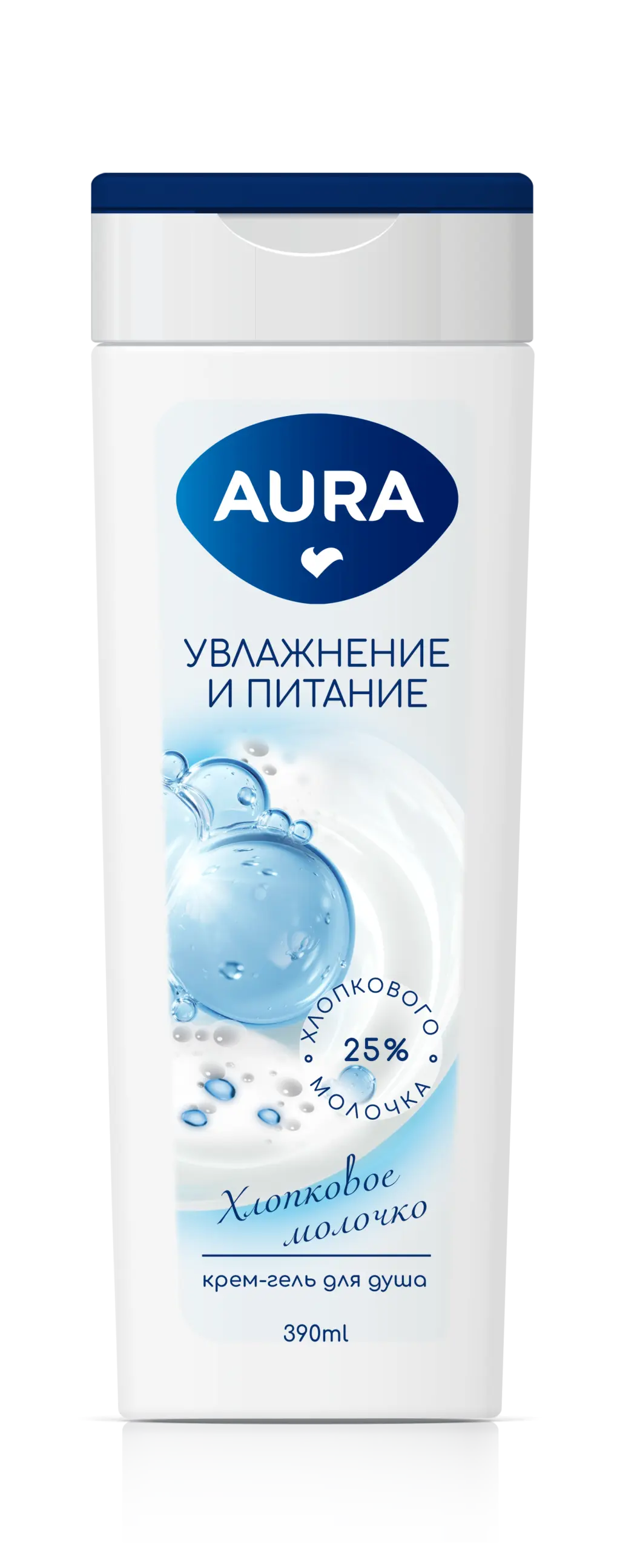 Aura крем гель для душа хлопковое молочко флакон флиптоп 390 мл