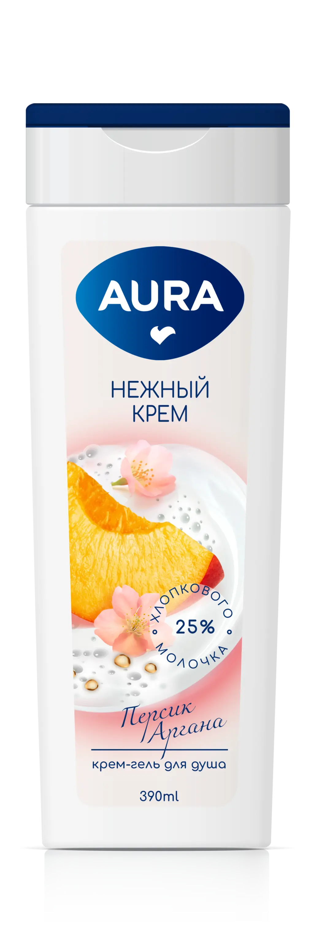 Aura крем гель для душа персик и аргана флакон флиптоп 390 мл