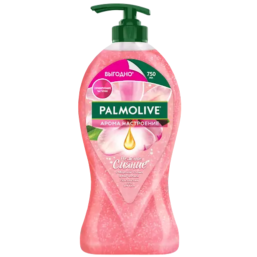 - Гель для душа Palmolive в перерабатываемой пластиковой бутылке* с дозатором, объемом 750 мл, обеспечивает удобное использование;