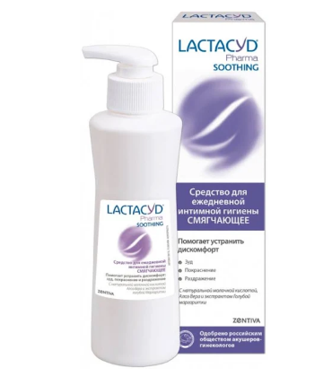 LACTACYD PHARMA - это специальная линия средств с более низким pH 3,5, который стимулирует рост полезных лактобактерий, способствуя восстановлению и поддержанию естественной микрофлоры интимной зоны. В состав входят активные природные компоненты, обладающие терапевтическим действием. Эффективность средств линейки LACTACYD PHARMA подтверждена большим количеством клинических исследований и тестирований. LACTACYD PHARMA SOOTHING помогает облегчить ощущения вагинального дискомфорта и избавиться от таких симптомов, как зуд, жжение, раздражение, покраснение. Бисаболол и экстракт голубой маргаритки, входящие в состав средства, обладают эффективными противовоспалительными свойствами. Бисаболол обеспечит увлажнение кожи, придаст ей эластичность, ускорит процесс регенерации клеток. Экстракт голубой маргаритки мягко успокоит и смягчит раздраженную зону. А натуральная молочная кислота поможет восстановить естественный баланс микрофлоры. Помимо ежедневной профилактики, средство можно использовать как дополнительное